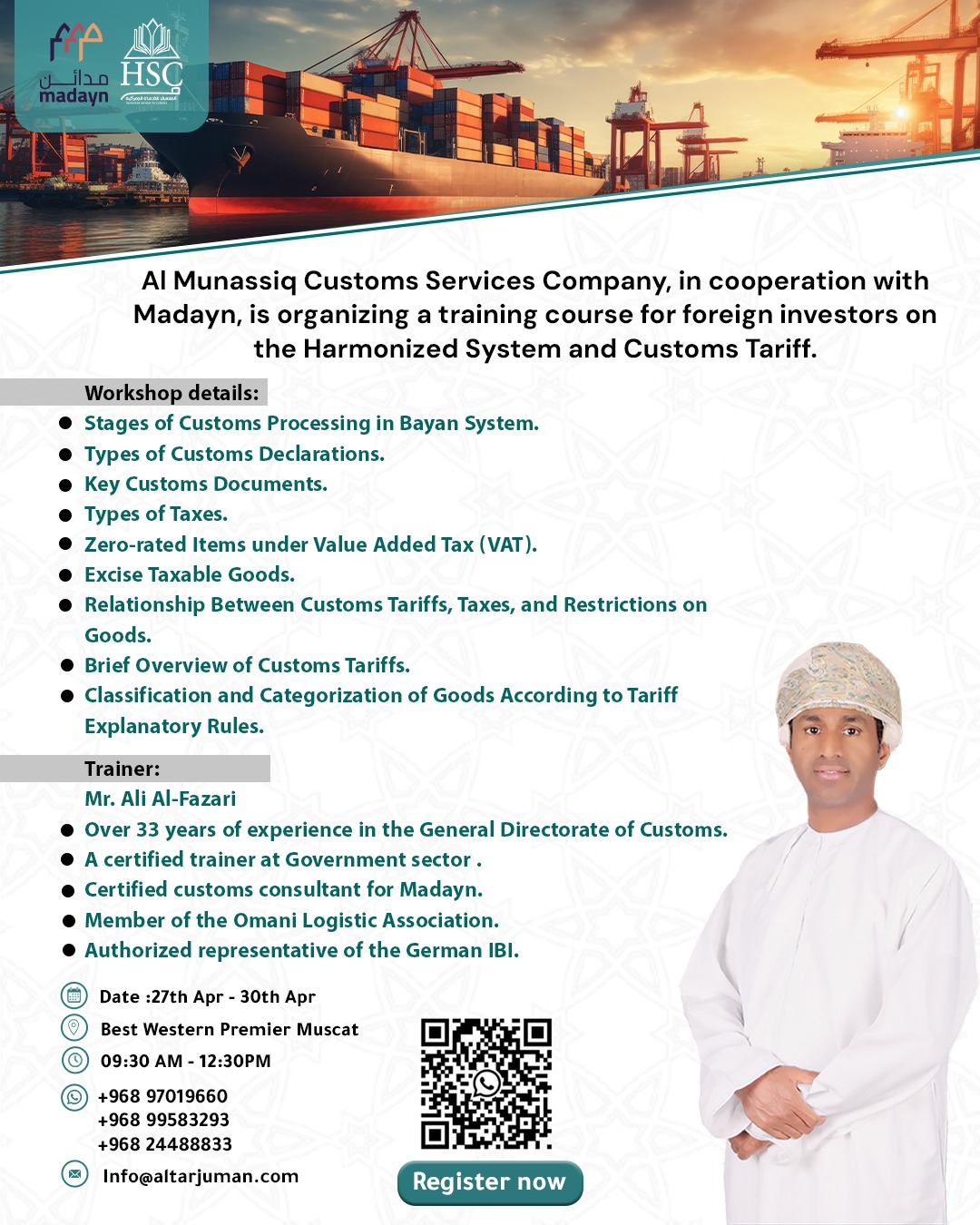 دوره النظام المنسق والتعرفة الجمركية لمنتسبي غرفه وتجاره عمان المقر الرئيسي مسقط
